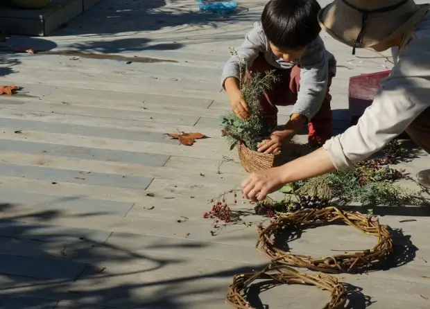 木を彫っている音と庭の音が心地よく混ざり合う。