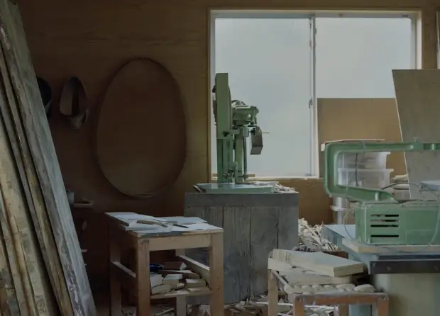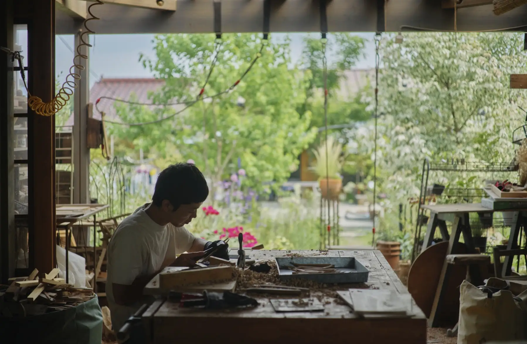 大道具会社でTVセットなどを作る仕事を始めるが、壊されることの切なさを感じて、家具工房へ転職。