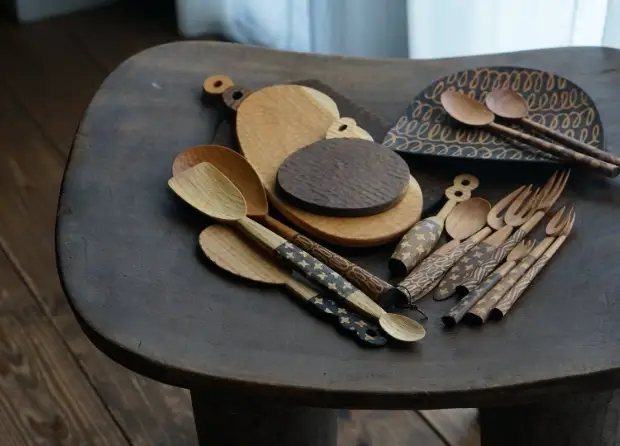 主にサクラやクリの木を使い、器、カトラリーなどの生活道具や、暮らしを彩るインテリアを制作しています。
